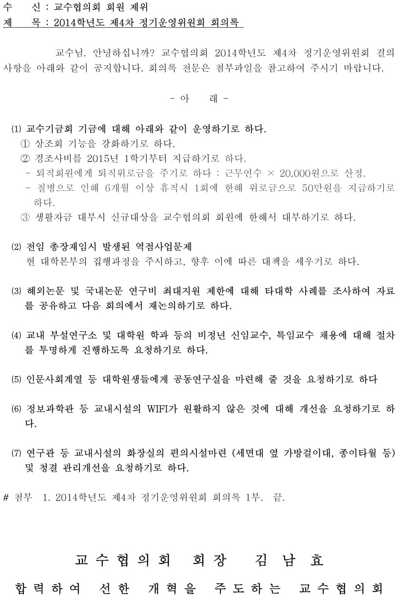 2014년 제4차 정기운영위원회 회의록 페이지 정보 작성자 최고관리자 댓글 0건 조회 152회 작성일 14-12-22 00:00 목록 본문 교협소식 14-44 이전글2014년 제6차 대학평의원회 회의록 15.02.12 다음글12월 활동보고 15.02.24