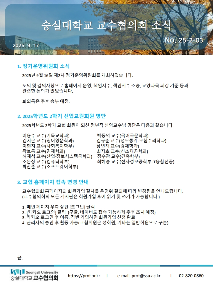 교협소식 25-2-03 페이지 정보 작성자 최고관리자 댓글 0건 조회 249회 작성일 25-09-17 13:50 목록 본문 . 이전글교협소식 25-2-04 25.09.24 다음글교협소식 25-2-02 25.09.10